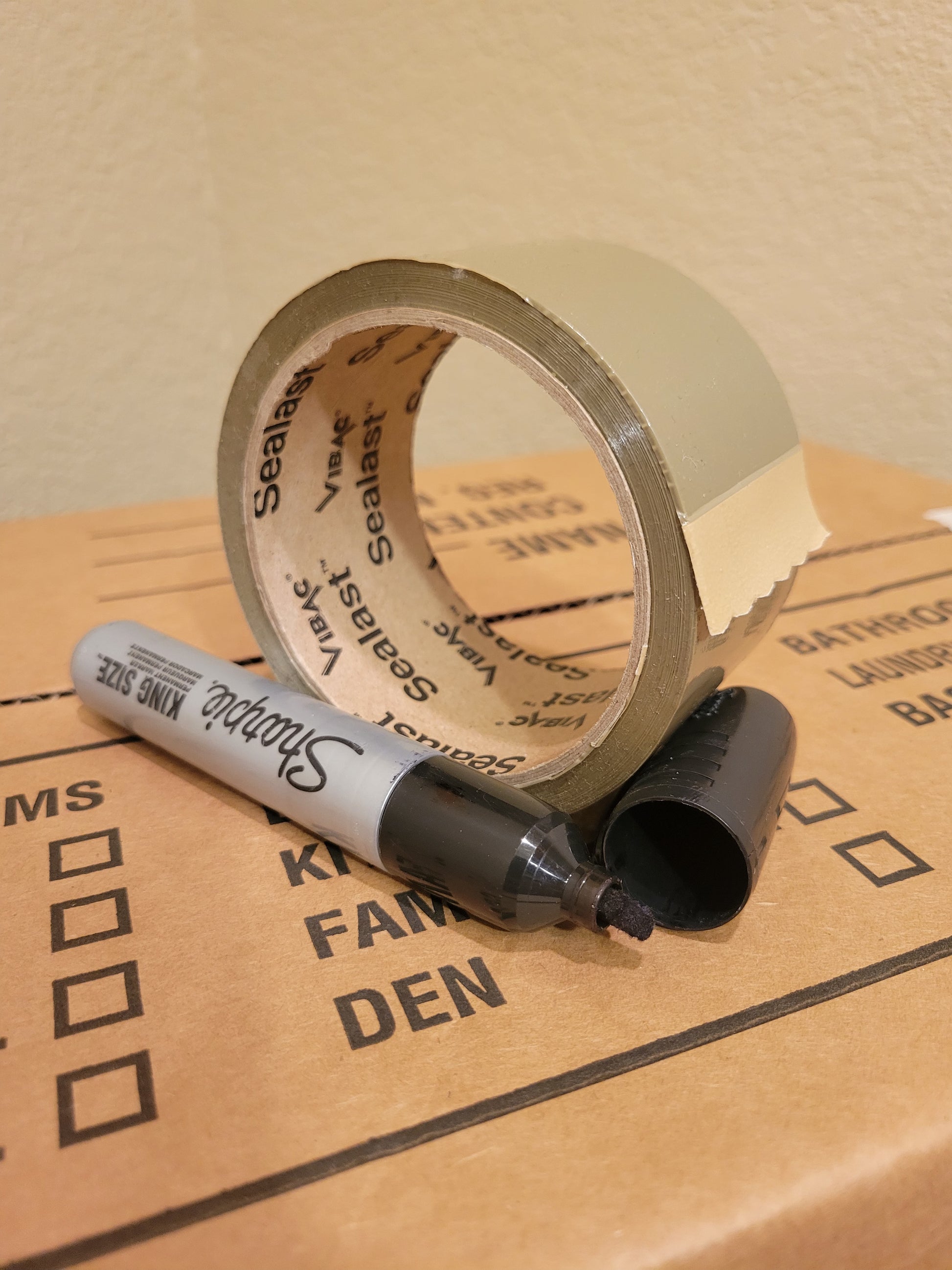 - Small, medium, large, and XL boxes as appropriate for the selected space.